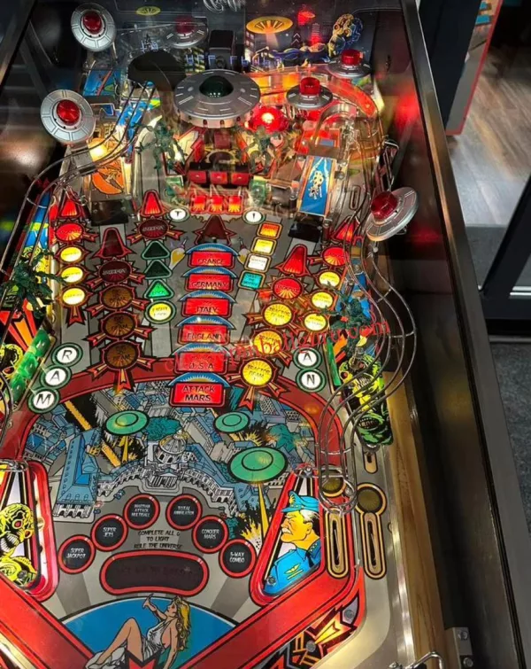 Get ready to defend Earth from a vicious alien invasion with the Attack from Mars pinball machine. Order now and get ready to embark on an intergalactic adventure that you’ll never forget. With its immersive design, challenging gameplay, and unforgettable sound, the Attack from Mars pinball machine is a must-have for any pinball enthusiast.