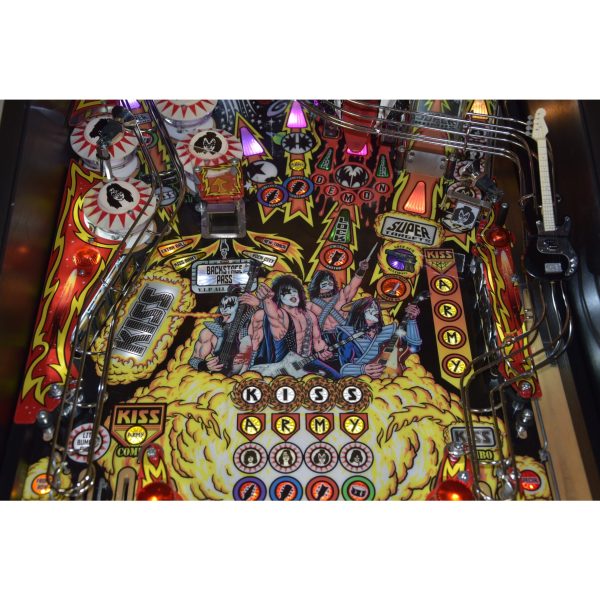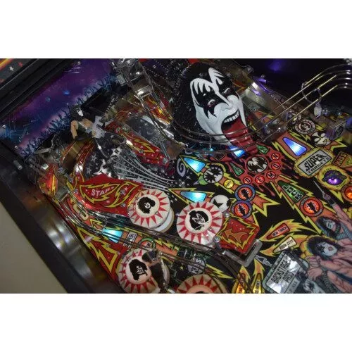 The Kiss Pro pinball machine is a stunning tribute to one of the most legendary rock bands of all time. It features amazing hand-drawn artwork of band members, custom ramps, targets, spinners, and various challenging modes, making it a perfect fit for both casual and experienced players.