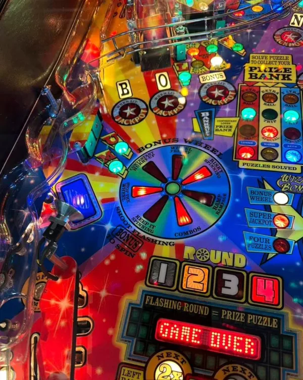 This Wheel of Fortune Pinball Machine faithfully recreates the vibrant and engaging atmosphere of the TV show. Featuring genuine artwork, sound effects, and the iconic Wheel itself, you’ll feel as if you’ve stepped onto the actual game show set. The attention to detail in both design and functionality makes this pinball machine a true collector’s item.